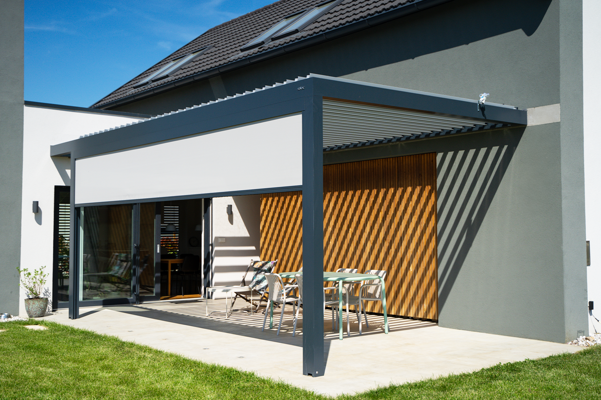 Bioklimatische Pergola und Glasport für mehr Licht Startseite Referenzen Bioklimatische Pergola und Glasport für mehr Licht Bioklimatische Pergola und Glasport für mehr Licht