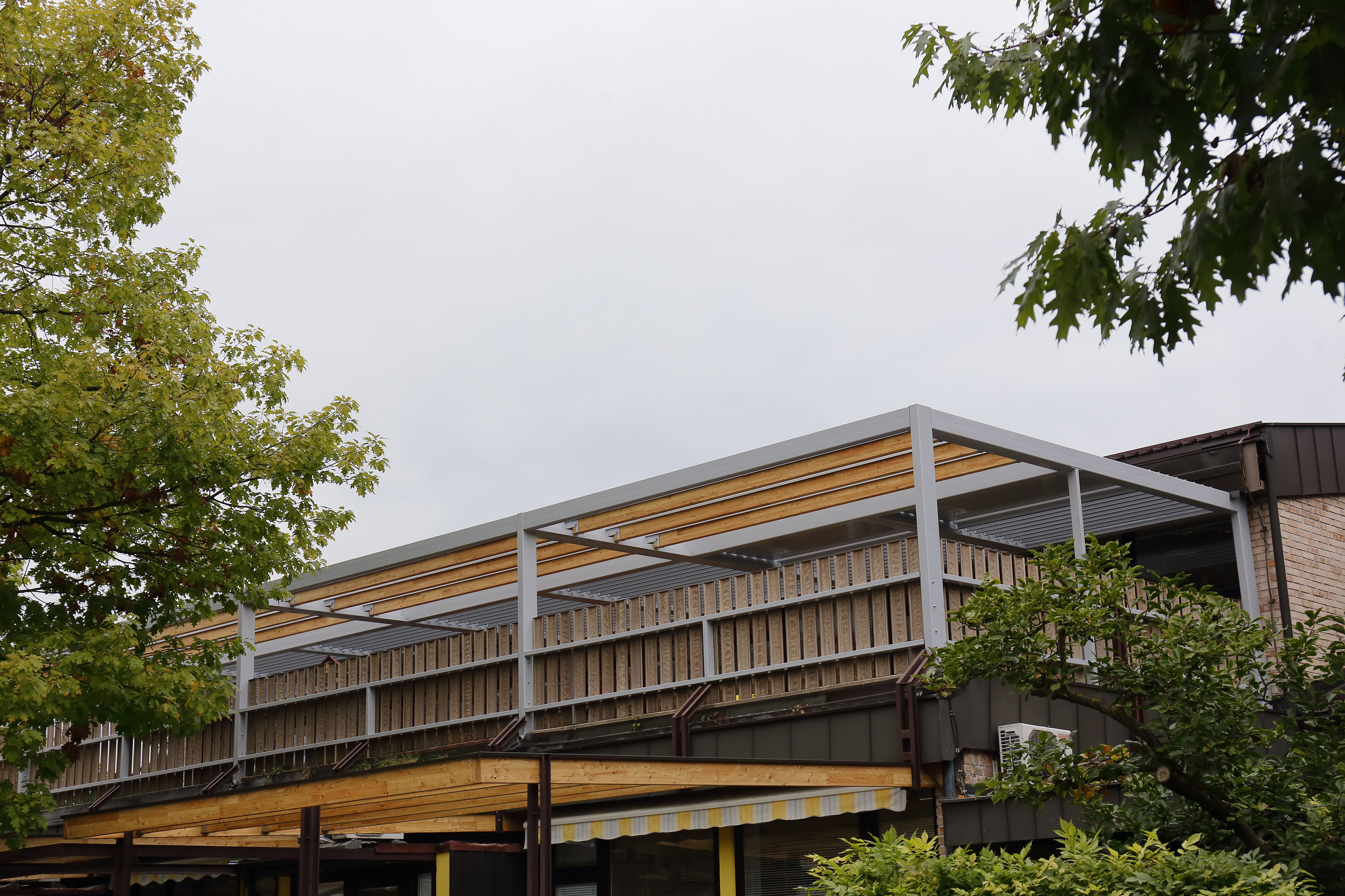 Die dynamische Fassade mit motorisierten Faltpaneelen von Soltec verbindet elegantes Design mit effektiver Verschattung, Privatsphäre und moderner Ästhetik. Die Paneele aus stranggepresstem Aluminium mit Holzdekor öffnen sich geräuschlos bis zu 180° mithilfe von Linearmotoren und ermöglichen so eine flexible Steuerung von Licht, Wärme und Sichtschutz.