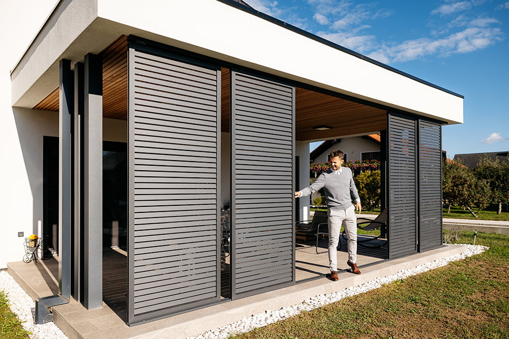 Side ZIP roller blinds, wooden or glass panels, integrated lights, heating, music, and remote control are just some of the options available.