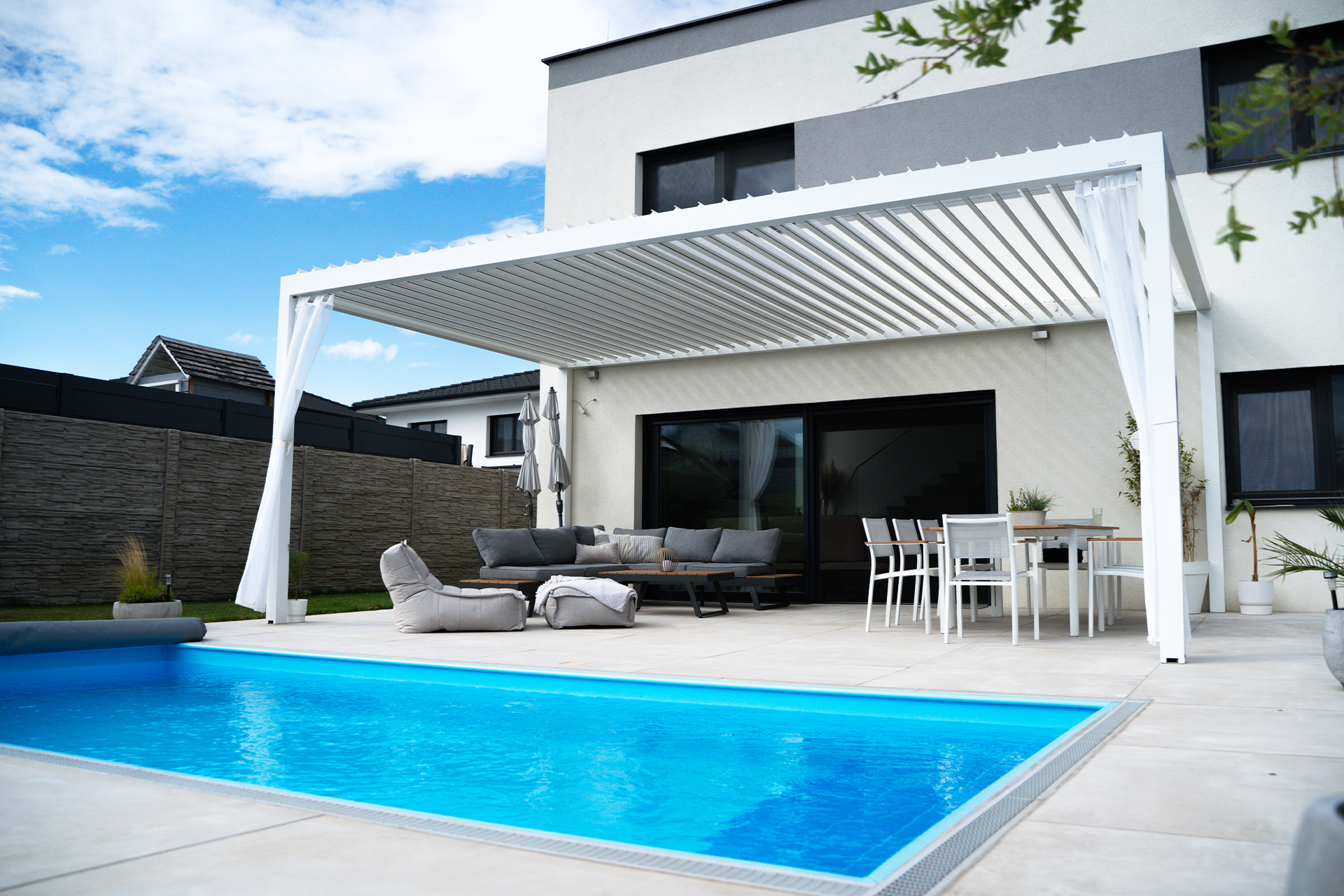 The modular design allows for numerous additional options. Adjusted sizes, wide range of colours, side ZIP blinds and sliding panels in various versions, glass walls, installed lights, heating, music.