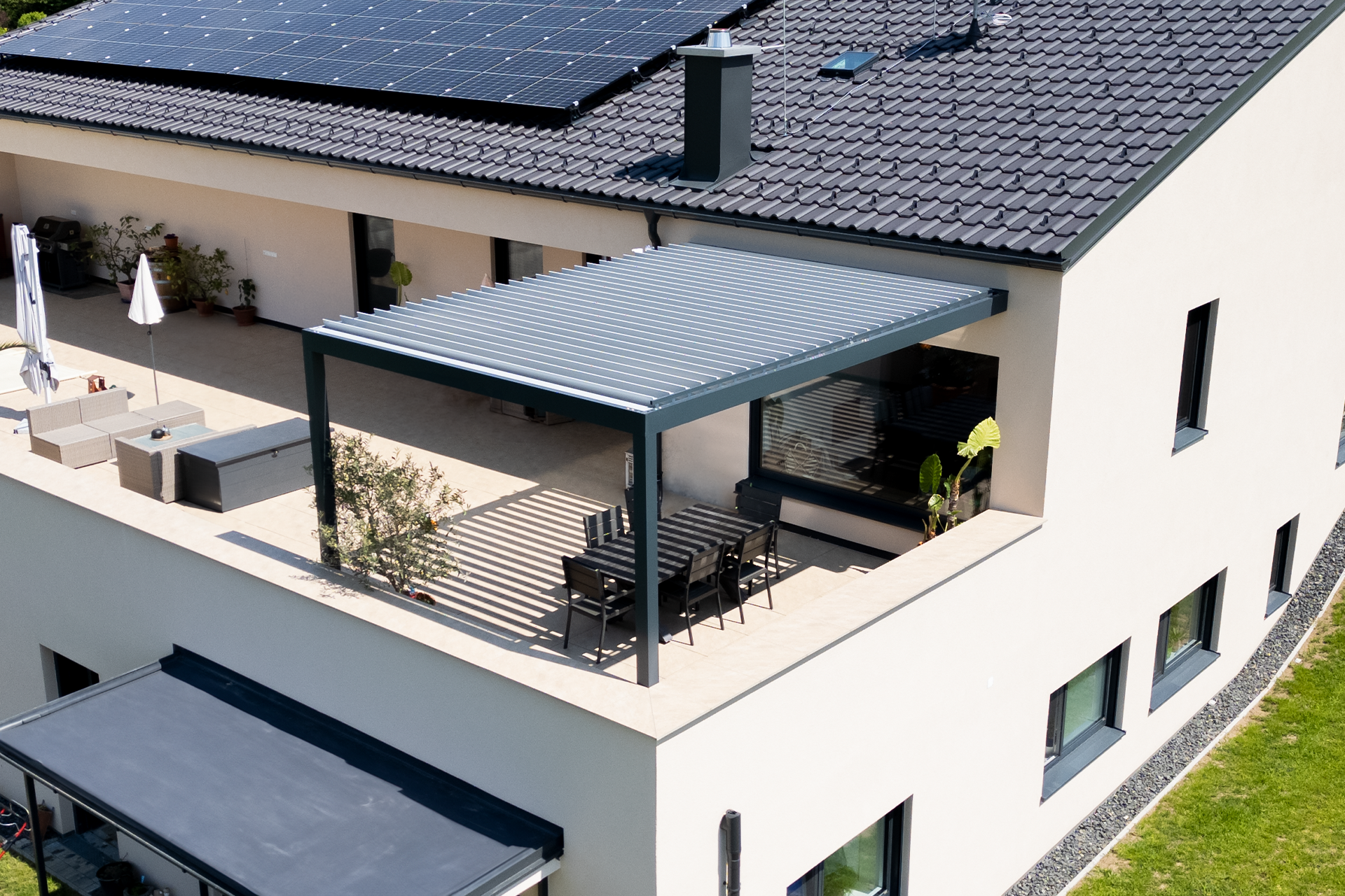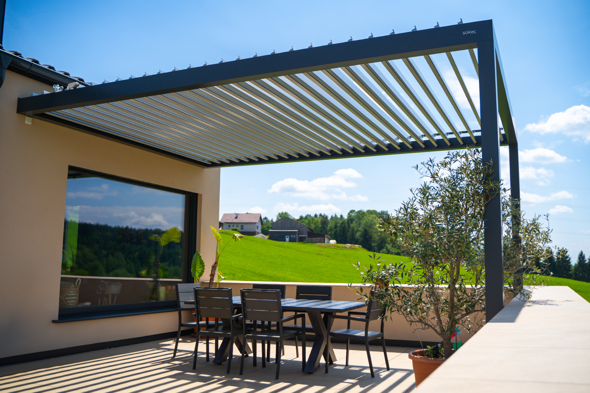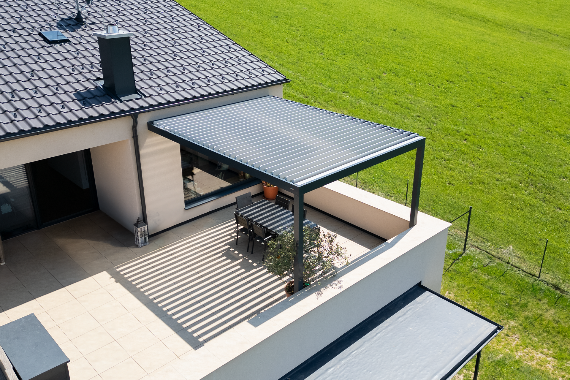 Pergola ohranja svetlobo in razgled skozi panoramsko okno