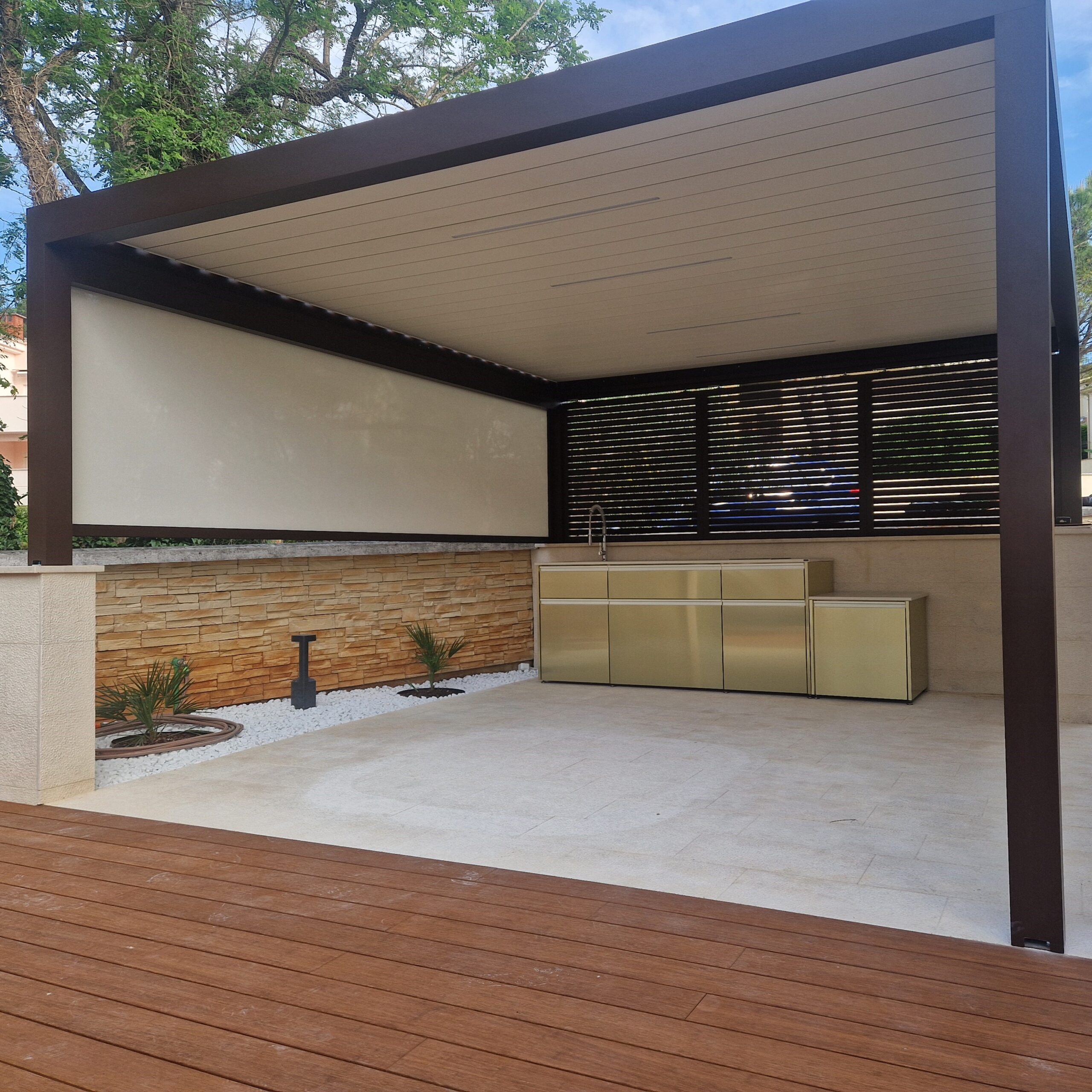 Soltec zunanja kuhinja spreminja zunanje bivanje v prijetno in brezskrbno izkušnjo. Namenjena je tistim, ki cenijo tako funkcionalnost kot estetiko, saj ustvarja popolno okolje za kuhanje, druženje in ustvarjanje nepozabnih trenutkov. Ne glede na to, ali gostite sproščeno srečanje ali gurmansko pojedino, obogati vaš zunanji prostor z eleganco in praktičnostjo ter povezuje ljudi na naraven in prijeten način.